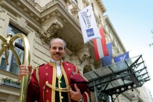 Tatlı bir zafer edasıyla VIP katına çıkıp kahvaltısını almak üzere oturdu. Burada kahvaltı hem açık büfe veriliyor hem de özel istekler masaya servis ediliyordu. Fiyata dahildiler. Envai çeşit ekmek, Viyana’nın meşhur çeşit çeşit peyniri, dilim dilim tropik meyveler, salata çeşitleri, şarküteri ürünleri, omlet ve yumurta, taze meyve suları, çay ve kahve seçimleri de kahvaltının vazgeçilmezleriydi. Sofra ve açık büfe sanat eseri gibiydi, renk ve aroma cümbüşü içinde nostaljik sandalyesine yerleşti, ağız tadıyla kahvaltısını yaptı.